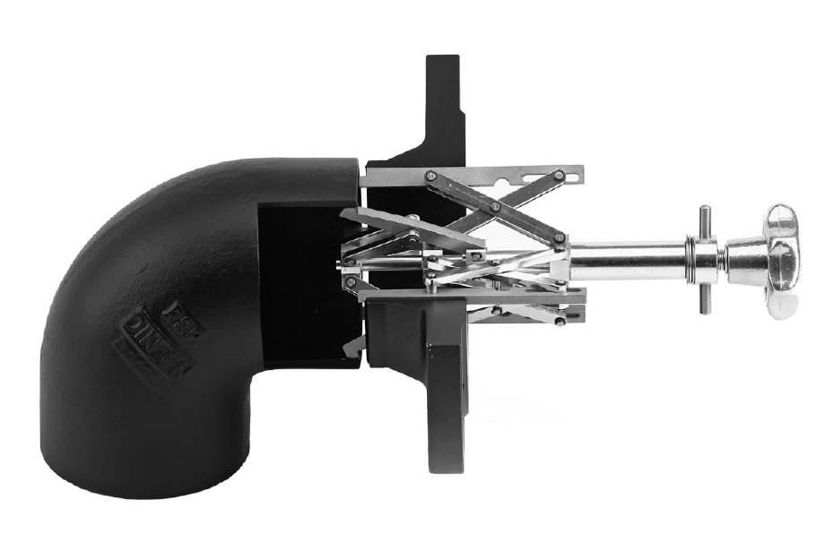 CENTROMAT® - Innenzentrierung Typ 5 für Rohrbögen mit unabhängig voneinander spannbaren Spreizelementen. Der untere Spreizkörper wird im Rohrbogen so weit gespannt, dass die Vorderkanten des oberen Spreizkörpers an der Stirnseite des Rohrbogens anliegen. Geeignet für Rohre und Anbauteile aus Stahl und Edelstahl. Die Kontaktflächen werden aus Edelstahl gefertigt. Material: Stahl/Edelstahl.